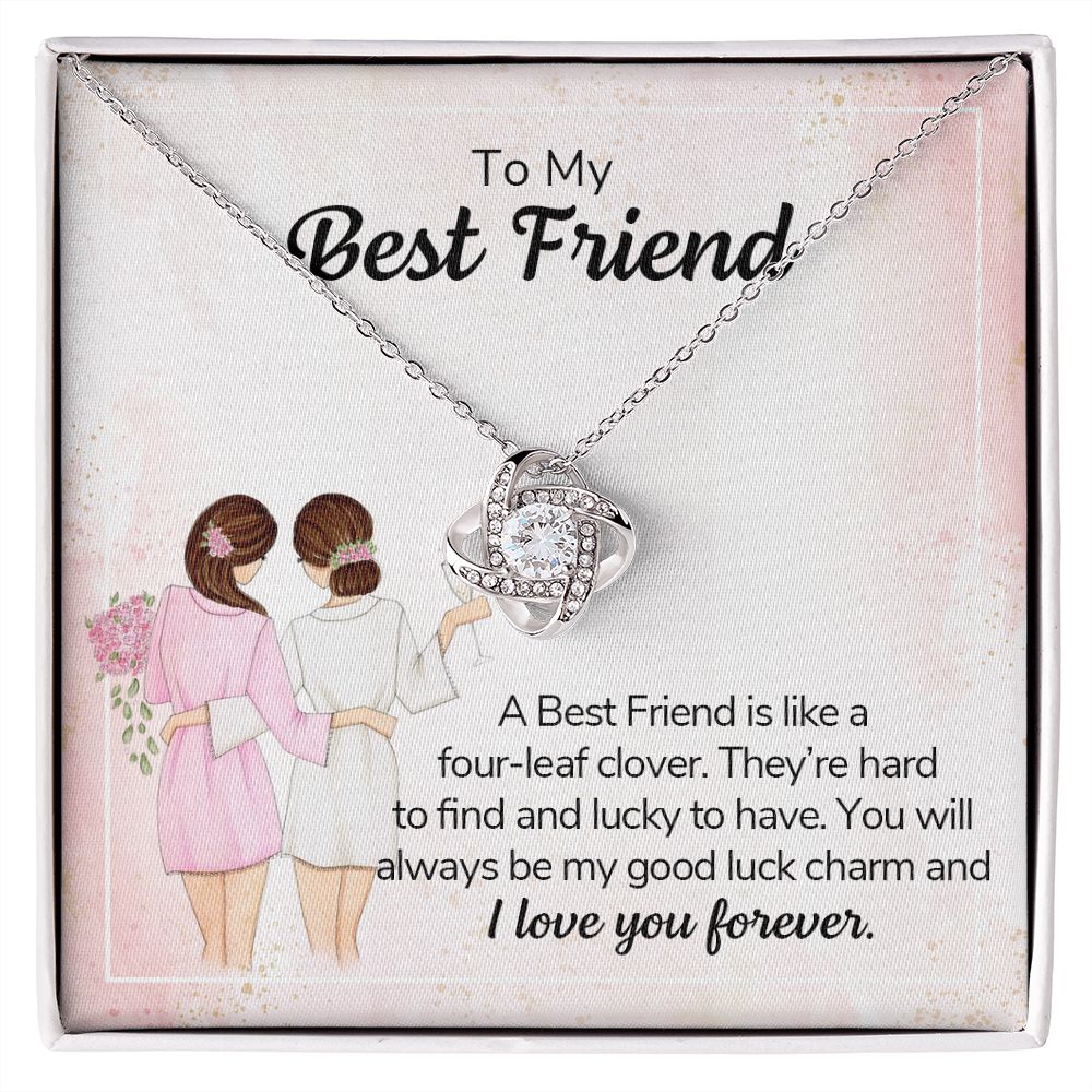 TO MY BEST FRIEND - A BEST FRIEND IS LIKE A FOUR-LEAF CLOVER -LOVE KNOT NECKLACE